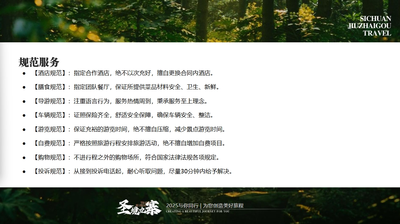 | 第3天 | 特色藏寨-九寨溝景區-藏家歡樂頌 飯店早餐後出發,前往參觀獨具特色的【特色藏寨】。聚居在這裡的藏民形成的藏族村落,幾百幢民居依山就勢、錯落有致地融於自然環境中,體現了天人合一的理念。後統一出發到【九寨溝景區】(觀光車90元/人,保險10元/人,自理且必須消費)停車場。抵達後到景區門口取票依序排隊搭乘觀光車進溝。九寨溝四季景色迷人。被譽為「美麗的童話世界」。 晚上參加【藏家歡樂頌】升級原本的普通食材,特製藏式美食,讓您體會到全新的味覺享受,體驗藏族人現代的生活方式和飲食習慣,了解藏族人今天的生活和性格特點,和藏族同胞零距離接觸,釋放壓力,回歸自然;吃藏式土火鍋,酥油茶、青稞、野菜與藏族酒一起歌舞鍋。結束後入住飯店休息! ![]() |
